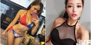 今天看到一位風格非常火辣的性感正妹,有次她扮演了爆乳兔女郎,身穿粉色大挖空裝,直接開到肚臍,超兇的側乳弧度看了實在是好養眼~~原來,這位正妹就是JKF女郎「韻韻」,在拍攝上尺度很大,擁有廣大的粉絲!