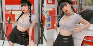颱風天沒事千萬不要出門!但在颱風來之前一定要囤好物資的啦~各位所在的地方有放到颱風假嗎?不論風雨大小,颱風時應該不少人都會先去超市大採購一番!JKF女郎「玲奈Lena」也不例外,長相甜美肌膚白皙的她,就穿著細肩帶白色小可愛跑去超市採買,但領口實在有夠低,彎腰拿泡麵的時候兩球「白嫩雙乳」就快要溢出啦!