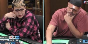 不过Coleman花了5分多钟才选择跟注,Lim的诈唬差点就奏效了,毕竟这一招打得太出其不意,如果身临其境,你一下很难做出判断,但也是过于出其不意处处透着怪异,所以Coleman最后还是选了跟注。