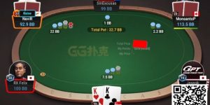 这样的局打起来跟GG Zoom NL50就有很大区别。GG上看到6BB的open,AJo我就直接扔了,但在这里则是非常强的牌了。考虑到对手比较激进,我AJo如果3bet后被4bet会比较尴尬,所以就选择了call。