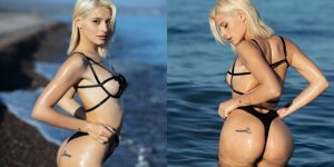 天氣漸漸變涼以為沒有比基尼可以洗洗雙眼了嗎?一叫出海豚音就招集了所有老司機的「小采緹Sunny」,穿著性感的比基尼一蹬就用渾圓的美臀坐上游泳圈邊緣,凹凸有致的美體出了水面一覽無遺,開心玩水的她一個重心不穩又掉回水中,淘氣又甜美的笑顏真是融化所有男粉的心!