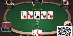 随着公共牌发出A♣K♣9♥Q♠6♦,CO位成功翻倍。