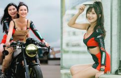 不只要外表亮麗、身材姣好,司機們說有野性的妹子才是真正有趣!就好比眼前這位【糖糖】,在場邊穿著黑紅相間的showgirl服裝,服貼著那凹凸有致的體態,緊致無贅肉的腰間搭上極短的短裙,還不忘展現燦爛的甜笑,別以為畫面僅此而已,有些叛逆的她趁著閒暇時刻不猶豫的跨上重機,還載起了其他同事,迎風而來的不但有那陽光迷人的笑顏,連領口那隨著路面而跳動的雙乳也讓大家拍手叫好! (圖片來源:
