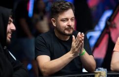 尽管Vogelsang没有完成顺子同花听牌,他只有7高的牌,但河牌发出了超高T的牌对于Ivey而言是有一点危险的,毕竟现在他已不再是顶对。Vogelsang知道自己只能通过下注来赢取底池,他决定测试一下对手,全下121,000,让Ivey陷于艰难处境。