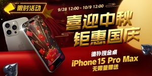 大家疯抢新机,已经造成现在是一机难求了!为"欢庆中秋国庆"即将到来的小长假,现在举办"iPhone15 Pro Max无限量赠送"活动。