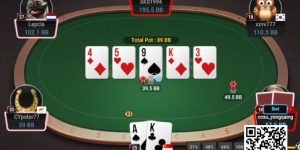Linus全压$54,159有效筹码。Ignacio跟注并向Linus亮出了四条,赢下这个$194,718的巨额底池。