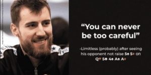 结语:我认为SB这手牌处理得非常好,很细腻,每条街都无可指摘。尤其河牌的1/10的block bet是点睛之笔,可能会引诱到一些AK的allin(想把对手的AK推掉)。