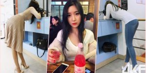 【EV女孩】加班到厭世!「童顏大波妹」穿休閒背心上班,偷懶放空吃冰棒全被同事拍下來啦!