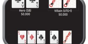 在25/50的游戏级别下,有几次跟注,然后Cates在HJ位用8♦5♠加注到400 。扑克博客作者Lex O 在按钮位用A♠10♠跟注,Mariano在小盲也跟注,他的牌是K♦10♦,然后Rampage在大盲位用J♥10♥再次加注到4000,只有Lex O和Mariano跟注。
