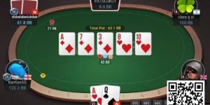 Dylan手里有坚果同花听牌。他赢得这手牌的几率为47%,仅略低于对手。如果曾玲琳确切知道他手里的牌,她将得到正确的底池赔率(作为53%的热门,赔率为2-1)。但她没有看到对手的牌的优势。