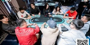 经过短暂的休息后,三人桌开始比拼。王烨记分牌最少,有27BB。Joao Vieirashi 是45BB,Aleksejs Ponakovs则有57BB。