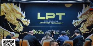 直到晚饭归来,比赛进入20级别(10K/20K)拐点出现。这手牌,+2位起open,HJ位长码翟常雨口袋A 3bet,BTN位短码李翔口袋7 4bet all-in,+2弃牌,翟常雨跟注。公共牌发出J2735的彩虹面,李翔翻牌set拿到翻倍。翟常雨元气大伤,不久后当他再次拿到口袋J的强牌时,又被曾唤威用QAo河底Q对击败,从而成为本次主赛第8名。