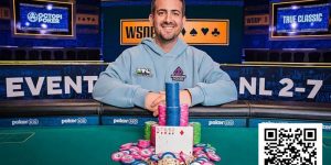 在今天进入WSOP 5000美元PLO赛事决赛日时,他与另一位选手并列记分牌领先,当时还剩下11名选手,他立刻吸引了众多观众围在他桌边。