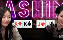 翻牌前:Sia在UTG位拿着K♦K♣率先加注到120。HJ位的DJ Washburn用7♣2♠ 3-bet到500,小盲位的Sashimi用J♥J♣跟注。