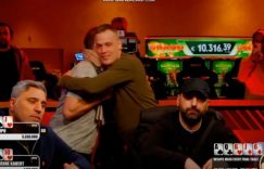 在国王娱乐场的€1,700的主赛中还有5名玩家,游戏级别为60K/120k,Pierre Kauert在翻牌前用JT投入了他最后的100万记分牌。“Lupo”用KJ跟注。