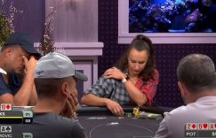当时Daniel Custodio在河牌圈做了一个迫使Loeliger全压的下注,Loegliger考虑了几分钟,然后在读秒结束前决定跟注,结果发现她赢不了。