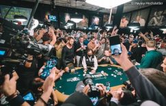 是的,你没看错,Robbi Jade Lew在转牌圈没有中牌也没有听牌的情况下,用J嗨跟注了盖哥的全下,拿下了这个$269,000的底池。盖哥很明显被震惊到了,在牌局结束之后迅速产生了怀疑。