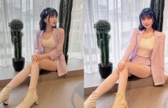 【EV扑克】大眼女孩「Sweet」套裝造型美腿好吸睛,白嫩美肌好誘人呀!