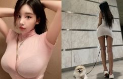【EV扑克】超大方「韓國巨乳正妹」深夜遛狗放福利,緊身短裙秀「修長美腿」!