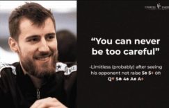 【EV扑克(www.evp68.com)报道】我们今天要讨论的牌局来自一个盲注50/100美元的单挑局,对战的双方是高注额职业牌手Limitless和Stefan11222。两人今年经常一起在单挑桌鏖战。