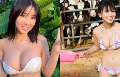 【EV女孩】「童顏巨乳學生妹」跑鄉下玩耍穿比基尼餵牛,18歲「完熟歐派」自然又飽滿!