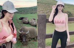 【EV女孩】超猛「爆乳正妹」子涵擎天岡出沒!看牛不忘帶上「重量級長輩」 火辣身材誰能無視她